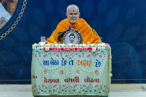 અક્ષર મંદિર ખાતે વિરાજમાન પરમ પૂજ્ય મહંત સ્વામી મહારાજે પ્રાતઃપૂજાનાં દર્શન આપ્યાં હતાં