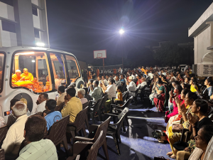 આજે સાંજે સભાના બદલે જે ગ્રામ્ય વિસ્તારોમાં પૂજ્ય અખંડ ચિંતન સ્વામી સત્સંગ પ્રવૃત્તિ સંભાળી રહ્યા છે તેવા જૂનાગઢ બી.એ.પી.એસ મંદિરના નેજા હેઠળ આવેલાં વેરાવળ, કેશોદ, તાલાળા ગીર, મેંદરડા, માળીયા (હાટીના) , વિસાવદર વગેરે આશરે ૬૦ જેટલાં ગ્રામ્ય વિસ્તારોના હરિભક્તો પરમ પૂજ્ય મહંત સ્વામી મહારાજનાં સમીપ દર્શને ઉમટ્યા હતા.જે ગ્રામ્ય વિસ્તારોમાં પૂજ્ય અખંડ ચિંતન સ્વામી સત્સંગ પ્રવૃત્તિ સંભાળી રહ્યા છે.