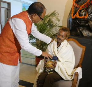 પેશાબકાંડ BJP નેતાનું પાપ CM શિવરાજ ચૌહાણે ધોયું, પીડિત આદિવાસીને ઘરે બોલાવી પગ ધોયા, શાલ ઓઢાડી