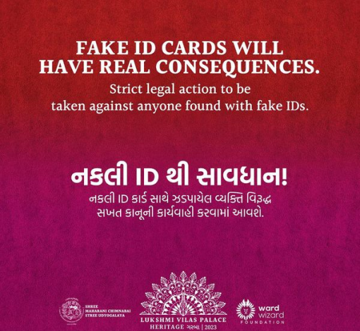 રાજ્યભરમાં હાલ એકબાજુ નવરાત્રી પર ધામધૂમથી ગરબાનું આયોજન કરવામાં આવી રહ્યું છે. 1 વર્ષની આતૂરતા બાદ ખેલૈયાઓ પણ ઉત્સાહપૂર્વક ગરબા ગાવા માટે પાર્ટી પ્લોટ અને અન્ય સ્થળો પર જઈ રહ્યા છે. આ વચ્ચે વડોદરામાં જાણીતા લક્ષ્મી વિલાસ પેલેસ દ્વારા યોજાયેલા હેરીટેજ ગરબા-2023માં કેટલાક લોકો નકલી પાસ લઈને પહોંચી ગયા. જે બાદ સિક્યોરિટી ગાર્ડ દ્વારા આ લોકોને પકડી લેવામાં આવ્યા હતા. વિગતો મુજબ, વડોદરામાં લક્ષ્મી વિલાસ પેલેસ દ્વારા આ વર્ષે ‘નારી તું નારાયણી દેવી’ થીમ પર ગરબાનું આયોજન કરવામાં આવ્યું છે. ગરબાના સુંદર આયોજનમાં મોટી સંખ્યામાં લોકો આવી રહ્યા છે. આ વચ્ચે ગરબા આયોજકો નકલી પાસ મળતા ચોંકી ઉઠ્યા હતા. એન્ટ્રી પાસની કલર ઝેરોક્ષ કરાવીને 1500 જેટલા ખેલૈયાઓ ગરબામાં એન્ટર થતા સિક્યોરિટી ગાર્ડના હાથે ઝડપાઈ ગયા હતા. પાસના RFID તપાસમાં તે નકલી હોવાનું ખૂલ્યું હતું.
