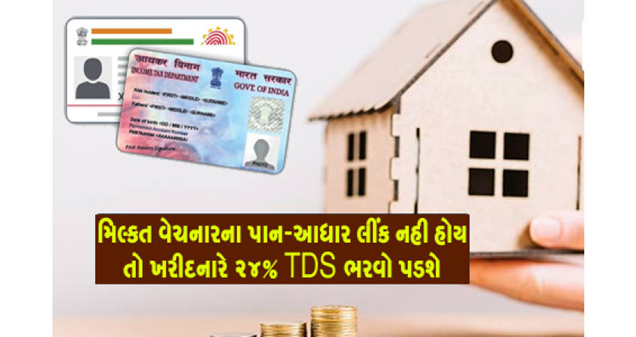 જો તમો કોઈ મિલ્કત ખરીદવા જઈ રહ્યા હો તો જે વેચનાર છે તેના આધાર અને પાન લીંકઅપ છે કે કેમ તે પહેલા ચકાસી લેજો. જો તેમ નહી હોય તો 20% ટીડીએસ તમારે ભરવાનો આવશે