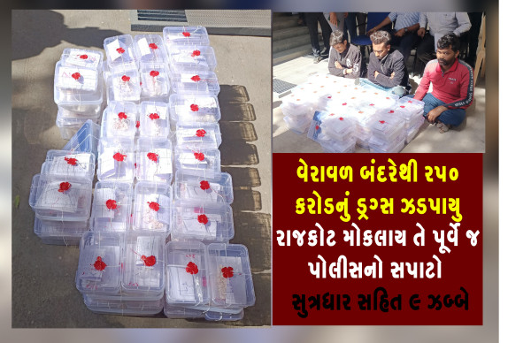 રાજયના હેરોઇન અને ડ્રગ્સ સામે ચાલી રહેલ જનજાગૃતિ અને અભિયાનના ભાગરૂપે ગુજરાત પોલીસ છેલ્લા ઘણા સમયથી એલર્ટ મોડમાં હોય તેવામાં વેરાવળ બંદરે હેરોઇનનો મોટો જથ્થો આવી રહ્યો હોવાની બાતમી આધારે એલસીબી અને એસઓજીએ નલીયા ગોદી બંદર વિસ્તારમાં વોચ ગોઠવી 250 કરોડના હેરોઇનનો જથ્થો ઝડપી લેવામાં સફળતા મેળવી છે. આ અંગેની વિગતો અનુસાર ગીર સોમનાથ એલસીબી અને એસઓજી ટીમે બાતમી આધારે વોચ ગોઠવી વેરાવળ ગોદી વિસ્તારમાં મારૂતિ કાર નં. જીજે 03 એસી 7697ને અટકાવી તલાટી લેતા તેમાંથી પાર્સલમાં છુપાવેલ હેરોઇનનો જથ્થો મળી આવતા કારમાં બેઠેલા આસીફ ઉર્ફે કારા જુસબ સમા (રહે. જામનગર), અરબાઝ અનવર પમા (રહે. જામનગર) અને ધરમેન બુધ્ધિલાલ કશ્યપ (રહે. મહમદપુર, નરવાલ, ઉતરપ્રદેશ)ને ઝડપી લઇ પુછપરછ કરતા આસીફે આ પાર્સલ રાજકોટ પહોંચાડવાની કબુલાત આપી હતી.