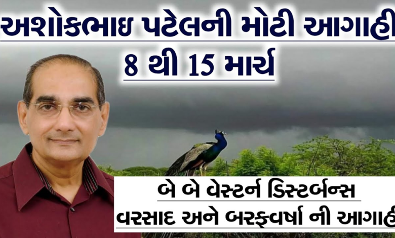 જાણીતા વેધર એનાલીસ્ટ અશોકભાઇ પટેલની આગાહી ,10 અને 12મી માર્ચે ઉપરાઉપરી બે વેસ્ટર્ન ડીસ્ટર્બન્સ: ઉત્તર ભારતમાં હિમવર્ષા-વરસાદ થશે