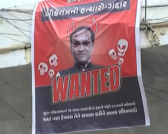 સુરતમાં નિલેશ કુંભાણી વોન્ટેડનાં પોસ્ટરો લાગ્યા; લોકતંત્રનો હત્યારો, ગદ્દાર જેવા લખાણ લખાયા