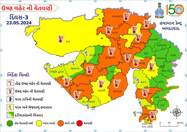 હવામાન વિભાગે રાજ્યમાં ગરમીને લઈ આગાહી કરી છે. ત્યારે હજુ આગામી બે દિવસ સુધી લોકોને ગરમીનો માર સહન કરવો પડી શકે છે. હજુ આગામી બે દિવસ સુધી લોકોને કાળઝાળ ગરમીથી રાહત નહીં મળે. હવામાન વિભાગે રાજ્યના ઘણા જિલ્લાઓમાં ઓરેન્જ એલર્ટ તેમજ યલો એલર્ટ જાહેર કર્યું છે. હવામાન વિભાગે 25 મે સુધી રાજ્યના અલગ-અલગ જિલ્લાઓમાં હીટવેવની આગાહી કરી છે. બુધવારે