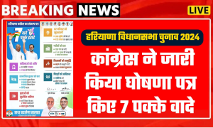 કોંગ્રેસે ચૂંટણી ઢંઢેરામાં MSP અને જાતિ આધારિત સર્વેની કાયદાકીય ગેરંટી સાથે 18 થી 60 વર્ષની મહિલાઓ માટે દર મહિને 2000 રૂપિયાની રકમ, વૃદ્ધો, અપંગ લોકો અને વિધવાઓને દર મહિને 6 હજાર રૂપિયા પેન્શન, બે લાખ સરકારી નોકરીઓ, 300 લાખ દર મહિને રૂપિયા વગેરે. યુનિટે મફત વીજળી, 25 લાખ રૂપિયાની મફત સારવાર, જમીનનો પ્લોટ અને ગરીબો માટે બે રૂમનું મકાન આપવાનું વચન આપ્યું છે. કોંગ્રેસે એવું પણ વચન આપ્યું છે કે જો તે સત્તામાં આવશે તો જૂની પેન્શન યોજના લાગુ કરશે અને દરેક પરિવારને 500 રૂપિયાનું LPG સિલિન્ડર આપશે. હરિયાણાની 90 વિધાનસભા બેઠકો માટે એક જ તબક્કામાં 5 ઓક્ટોબરે મતદાન થશે અને મતગણતરી 8 ઓક્ટોબરે થશે.